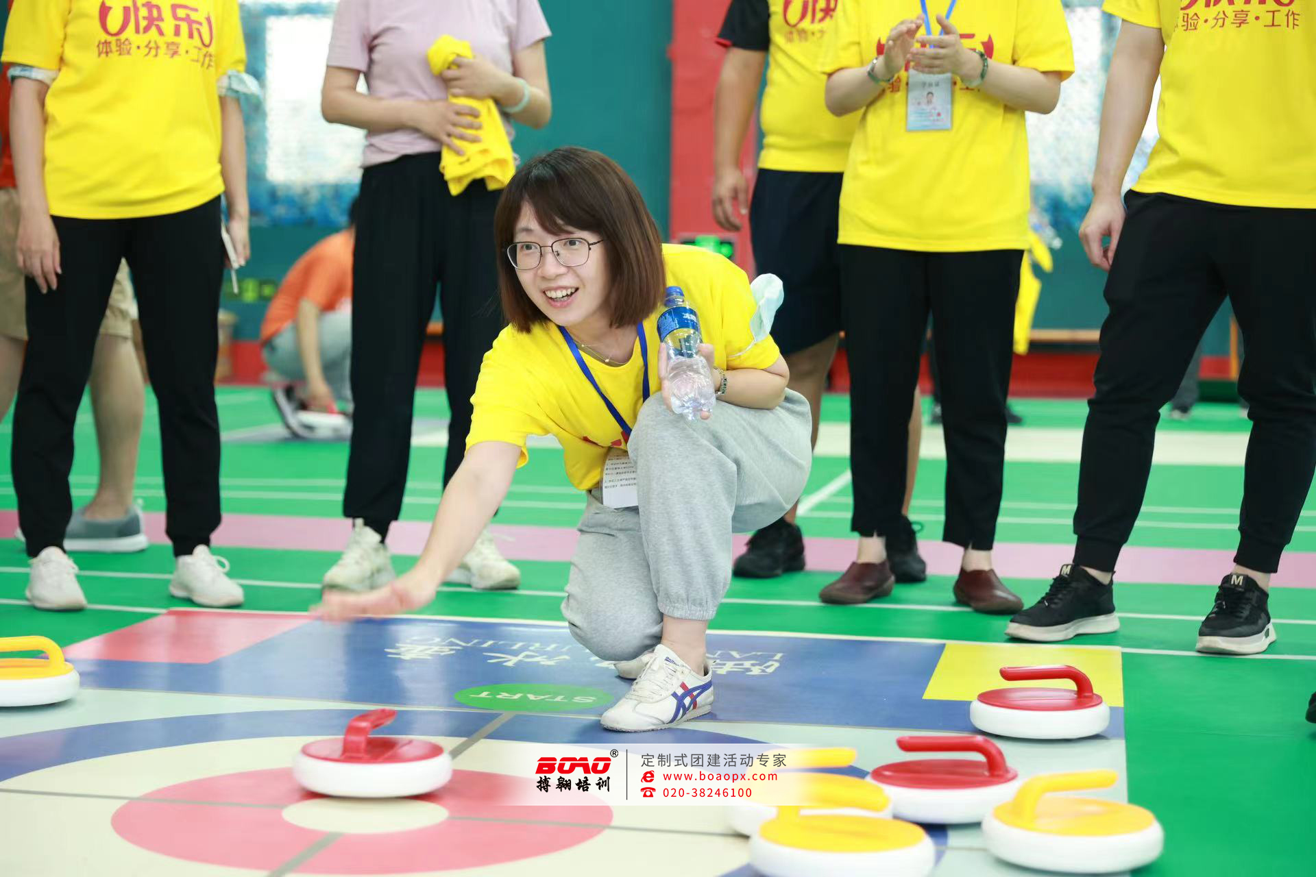 時(shí)間:2022-06-17作者:廣州拓展培訓(xùn) 瀏覽量: 近日,搏翱廣州拓展培訓(xùn)公司聯(lián)合中信銀行舉辦了一場(chǎng)陸地冰壺球體驗(yàn)課程。參與學(xué)員190余人,分組對(duì)抗,在賽場(chǎng)上展現(xiàn)自我風(fēng)采。