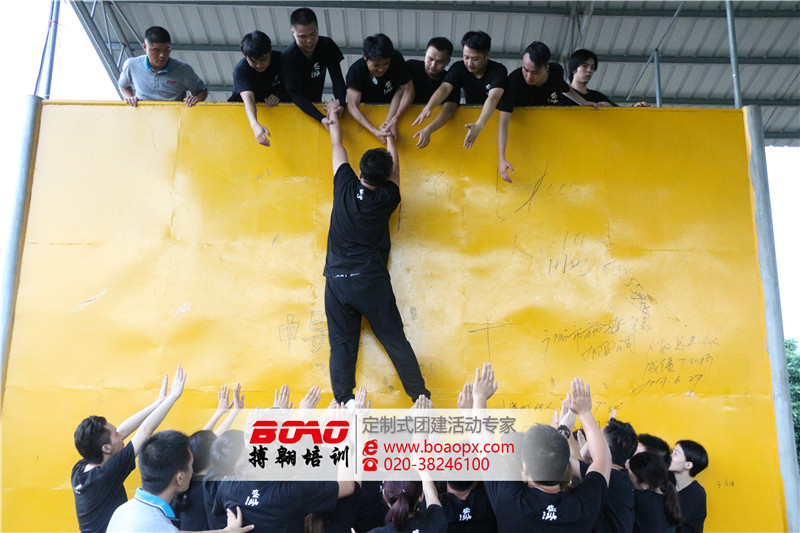 在這次的拓展訓(xùn)練活動中,讓我感觸最大的就是畢業(yè)墻拓展訓(xùn)練項目,在這個拓展訓(xùn)練項目之前我們所有人都已經(jīng)筋疲力盡了,看著4.2米高的畢業(yè)墻,我們似乎感覺到有一股非常大的挑戰(zhàn),但是在培訓(xùn)師的激勵下,在所有團隊成員的共同努力下,我們咬緊牙關(guān)最終征服了這堵畢業(yè)墻!
