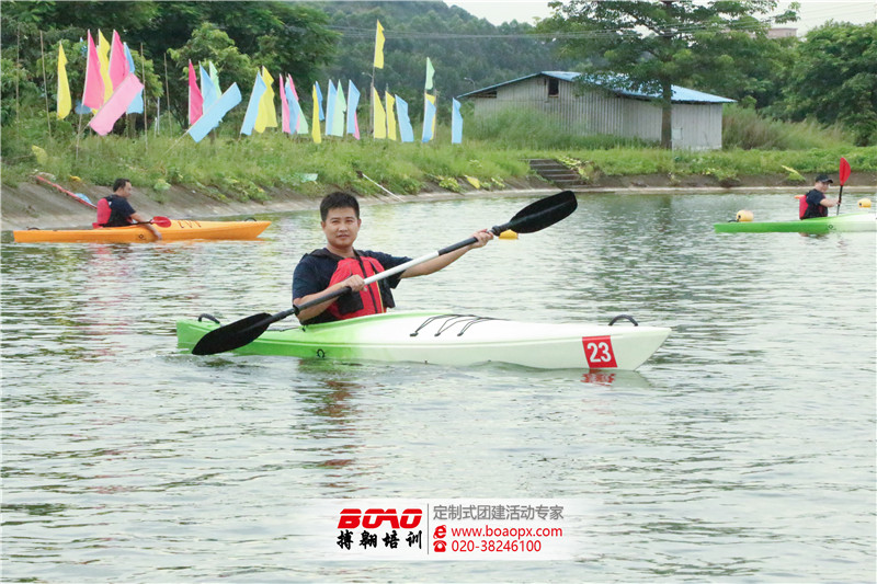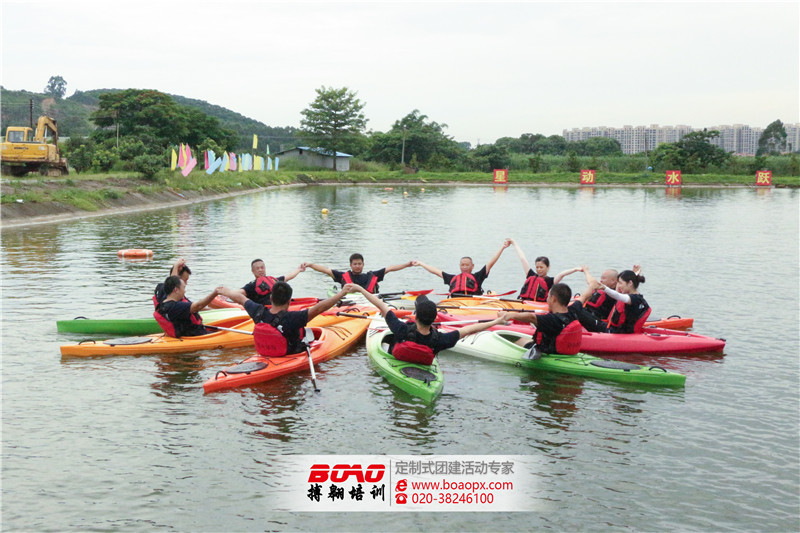 行程設計為第一天公司內部會議,總結并確認目標;第二天進行戶外拓展訓練,走進拓展場地,在教練的引導下每個人融入團隊,以團隊的形式扭動身體拉伸訓練;分組團建進行團隊展示,提高小組氣勢;在決戰(zhàn)沙場項目中大家積極溝通、發(fā)現(xiàn)、分享,討論出小組戰(zhàn)術安排和配合方式,以高效的方式擊敗對手;然后就是同樣讓大家期待的水上皮劃艇項目,首先在岸上進行技術動作練習,然后下水大展拳腳,適應協(xié)調的水上動作,再進行團隊競技PK(水上接力、艇頭漫步、圍艇花等),最后進行所有隊員的水上展示,證明我們是一個適應性強、敢于挑戰(zhàn)、勇于面對困難的優(yōu)秀團隊。