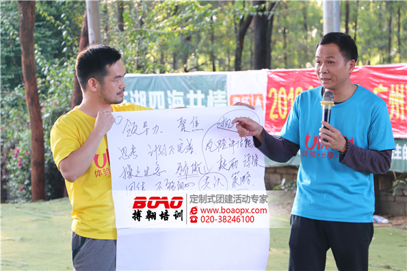 在廣州拓展訓(xùn)練環(huán)節(jié)有一個(gè)很好安排就是,在每個(gè)拓展訓(xùn)練項(xiàng)目完成的之后會(huì)有一個(gè)溝通分享環(huán)節(jié),大家排成方陣坐下來,教練鼓勵(lì)大家積極發(fā)言,讓大家認(rèn)識(shí)到自己的優(yōu)勢(shì)與不足之處。同時(shí)為自己和集體做出的突出表現(xiàn)給予肯定并給出意見。