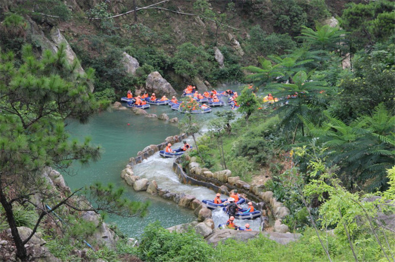牛仔谷漂流旅游度假區(qū)首期投資近億元,整個牛仔谷漂流景區(qū)占地面積2400畝。度假區(qū)內壩擁有3.2平方公里的水面,上游五星水庫儲水量達300萬立方米以上。度假區(qū)包括漂流、高爾夫練習場、攀巖、美食城、水上運動場、度假別墅、星級酒店、自行車賽區(qū)、越野車會所等十多個項目。并且有著得天獨厚的自然環(huán)境和人文環(huán)境。上游是五星水庫和五星林場,水量充沛,植物品種繁多,全程4.3公里的峽谷漂流沿途雄偉壯觀、怪石嶙峋。有落差達12米的險灘;有長50米的詭秘溶洞;有三波連環(huán)的彎道;有瓊漿飛散的流泉;有郁郁蔥蔥的芭蕉樹;有波光粼粼的深潭。整個過程急湍飛馳的水波帶你一路穿梭左右、披荊斬棘、吸氧醉綠、放松身心。更值得一提的事,清遠牛仔谷漂流的水道正是當年抗日戰(zhàn)爭年代北江特委第九中隊打游擊時游擊戰(zhàn)士運送戰(zhàn)略物資的黃金水道;也是解放戰(zhàn)爭時期粵贛湘邊縱隊北江第一支隊出入北江的必經之路,是我們后人追蹤革命先烈足跡,找尋歷史文物的好去處。